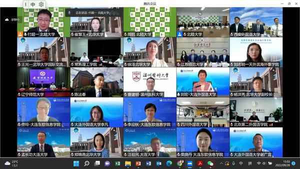 北陆大学理事长、校长小仓勤回顾了北陆大学与中方合作院校间20年的合作历程,对中方高校培养并输送优秀学生表示衷心感谢。北陆大学监事周航详细介绍了北陆大学“2+2”项目运行情况,展望了中日双方高校在短期交换生项目、学分互认项目和“2+2+2”硕士联合培养项目三个方面的发展前景。