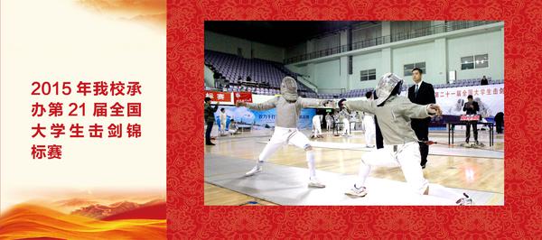 积极办赛,提升学校社会影响力。先后参与承办第九届全国大学生运动会、世界女子佩剑世界杯大奖赛、第六届东亚运动会、第二十一届全国大学生击剑锦标赛,充分彰显了学校办学特色,展示了学校办学实力。