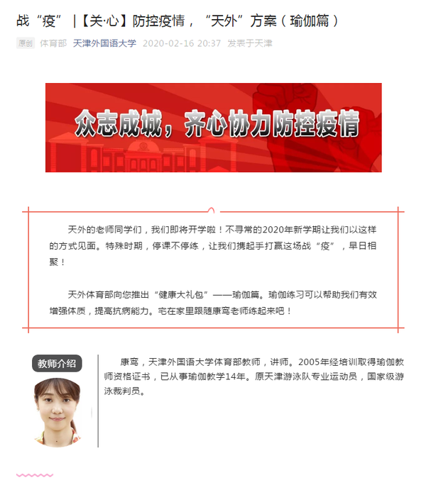 官微推送《防控疫情 天外方案(瑜伽篇)》