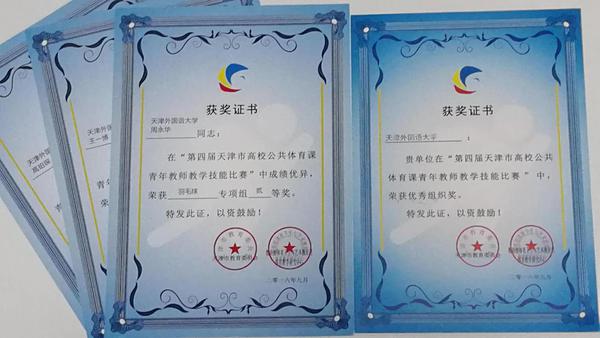 天津市高校青年体育教师教学基本功大赛获奖证书