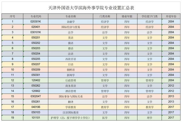学院以外国语言文学为优势学科,文学、经济学、管理学、法学、教育学、医学等多学科协调发展。经过多年的努力,由建院时的文学、经济学、法学和管理学4个学科门类,英语、金融学、法学等12个本科专业,扩展到现在的教育学、医学等6个学科门类,学前教育、护理学等19个本科专业。