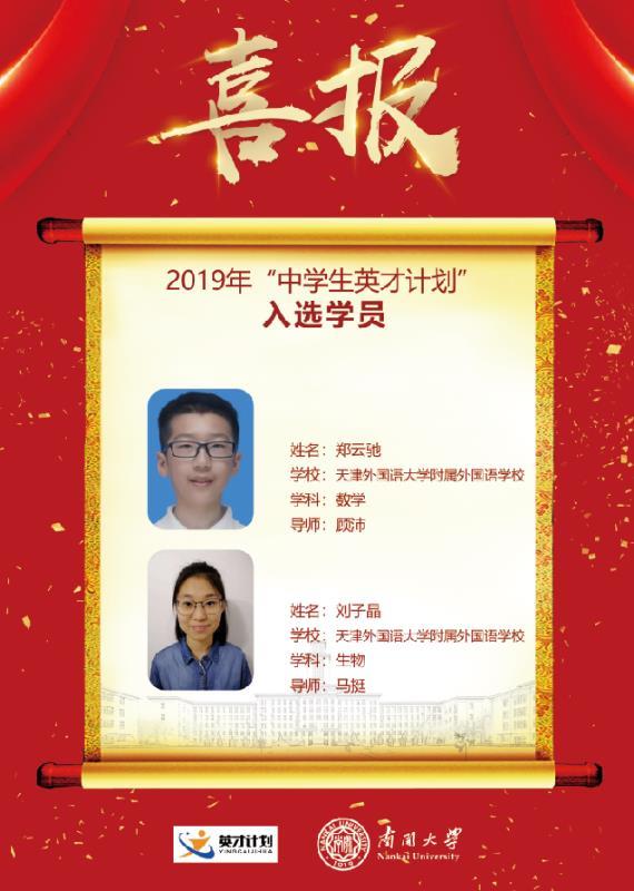 我校刘靖怡同学获2020年全国中学生生物学联赛(天津赛区)一等奖