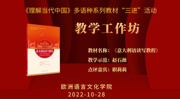 10月28日,欧洲语言文化学院在大江厅成功举办《理解当代中国》多语种教材“三进”系列活动的读写专场教学工作坊。由法语系贾芳、意大利语系负责人赵石薇作教学示范,法语系主任巫春峰、意大利语系职莉莉担任点评嘉宾。学院全体班子成员、系主任、学科带头人、各专业骨干教师等50余人参会。工作坊由副院长刘全主持。