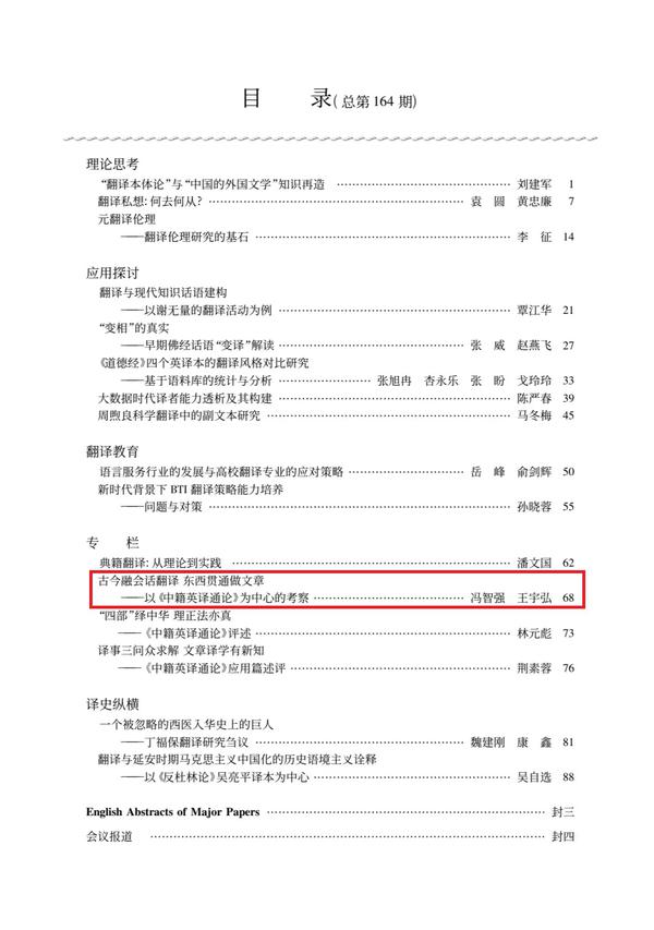 学术论文《古今融会话翻译 东西贯通做文章------以〈中籍英译通论〉为中心的考察》于2022年发表在《上海翻译》第3期,该刊为CSSCI来源期刊,ISSN号为1672-9358。该论文系2018年度教育部人文社会科学研究一般项目“林语堂对外话语建构模式研究”(项目编号:18YJA740012)的阶段性成果,公开发表后被“浙大译学馆”微信公众号全文转载。