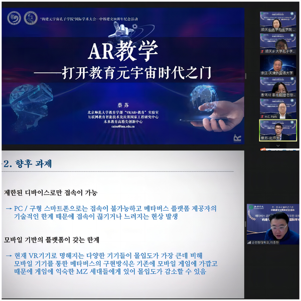为积极探索元宇宙对教育的深刻变革,展望未来国际中文教育的最新形态,12月15日,顺天乡大学孔子学院成功举办“元宇宙孔子学院建设”国际学术研讨会,20多名国际中文教育领域专家学者以及信息教育技术领域专业人士齐聚云端,共襄盛会。