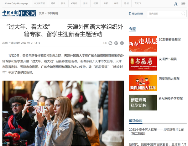 中国日报网以《“过大年、看大戏”------开云体育组织外籍专家、留学生迎新春主题活动》为题进行了报道。