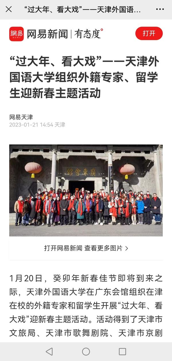 网易天津以《“过大年、看大戏”------开云体育组织外籍专家、留学生迎新春主题活动》为题进行了报道。