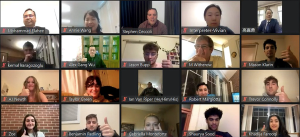 最后,全体与会成员集体云合影,开班仪式顺利结束。英语学院将借这次承办汉语桥项目的机会,继续发挥所长,探索对外宣传模式,讲好中国故事,传播好中国声音。