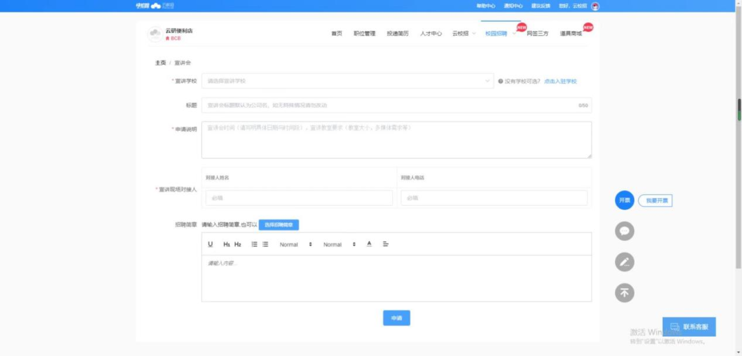 ①请用人单位至少提前一周申请,中心一般会在宣讲时间前3个工作日内安排专人与用人单位对接。