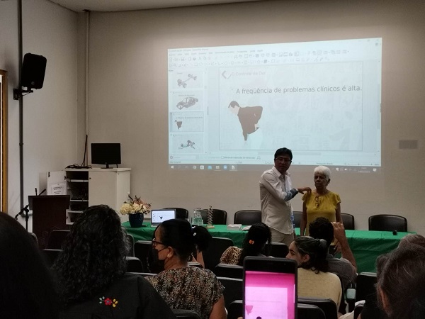 此次讲座理论与临床实践相结合,介绍了人体结构与姿势控制的概念,阐释了疼痛病理、结构改变与平衡控制代偿的关系;现场选择病例进行了分析,并进行针灸与推拿治疗操作;介绍了相关中医名词术语“正”的精准翻译研究工作进展;通过甲骨文“正”的研究解决了该术语在巴西葡萄牙语精准翻译的难点。讲座过程中,于涛回答了巴西学员学习中的疑问,现场的与会者还和嘉宾士进行了积极的学术讨论与交流,现场学术气氛热烈。