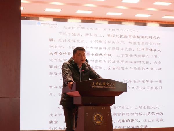 会上,校团委副书记于凯围绕深入学习习近平总书记对深入开展学雷锋活动作出的重要指示精神,深刻把握雷锋精神的时代内涵,从历史、理论和现实三个维度,为团员青年们上了一堂生动的“微团课”,弘扬了忠党爱国、服务人民的深厚情怀。
