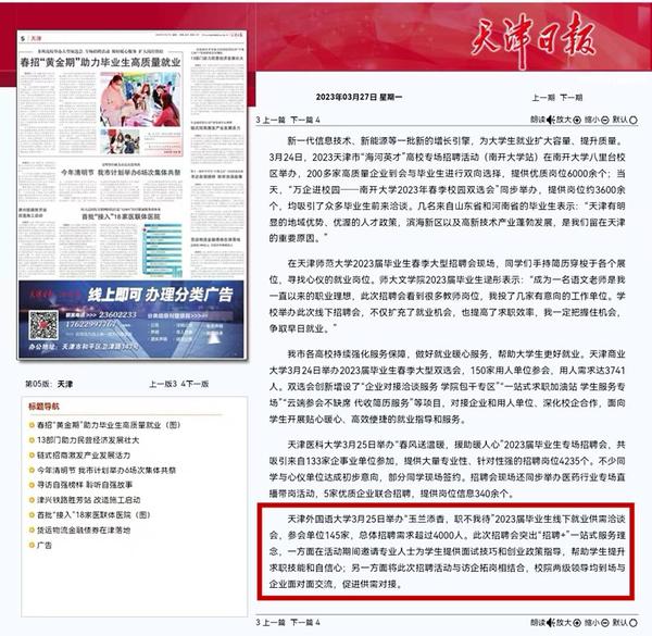 为抢抓春季招聘关键期,促进毕业生顺利就业、尽早就业,3月25日上午,“玉兰添香,职不我待”开云体育2023届毕业生线下就业供需洽谈会在我校综合体育馆成功举办,来自不同行业和地区的145家用人单位到校招聘,提供岗位近500个,总体招聘需求超过4000人,吸引1000余名学生参会。《天津日报》对此次活动进行了报道。