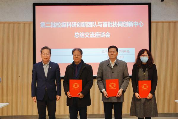 会上,科研处发布了《第二批校级科研创新团队与首批协同创新中心验收工作总结报告》。余江为各校级科研创新团队与协同创新中心颁发了结项证书。余江团队、刘宏伟团队、郑海呐团队以及佟立团队分别围绕校级科研创新团队与协同创新中心建设进行了经验交流与分享。