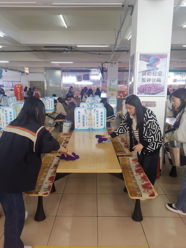 接下来的一周时间里,根据不同时间段、不同岗位,合理分配劳动任务和岗位,每位同学既有事做,又体验到不同岗位的劳动工作。有的同学中午和晚上用餐时间在食堂维持秩序和清理桌面卫生,有的同学下午到菜鸟驿站快递打包、整理货架,有的同学打扫教学楼公共区域的卫生,有的同学到图书馆整理书籍,核对书籍号的排序,还有的同学在运动场、篮球场、网球馆等处检查设备、维持秩序、安全保障等。全体同学每天固定时间认真打扫宿舍卫生、整理内务。班导师和辅导员对学生进行了鼓励和指导。各班组织召开劳动教育周主题班会,在班会上,同学们学习劳动模范先进事迹,总结劳动实践情况、分享劳动心得体会,将有益经验内化为科学的劳动观念,形成热爱劳动、崇尚劳动的意识。