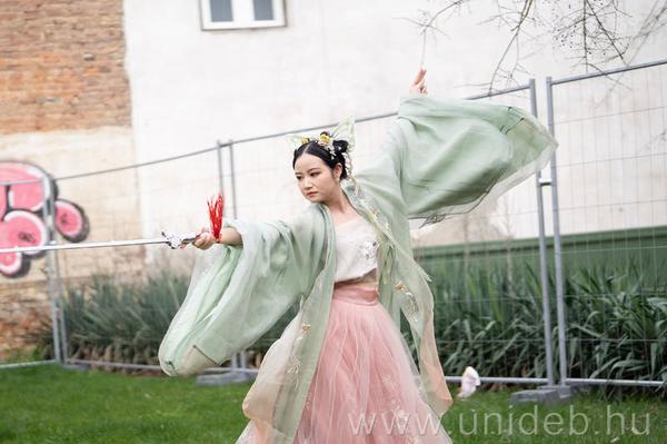 活动分两场先后举行。上半场活动,德布勒森大学孔子学院外方院长琼多什.帕尔博士主持,中方院长崔显军博士致开幕辞,来自德布勒森大学的中国留学生来到户外,身穿各式华服,为市民们表演了精彩的舞蹈、古筝和二重唱。