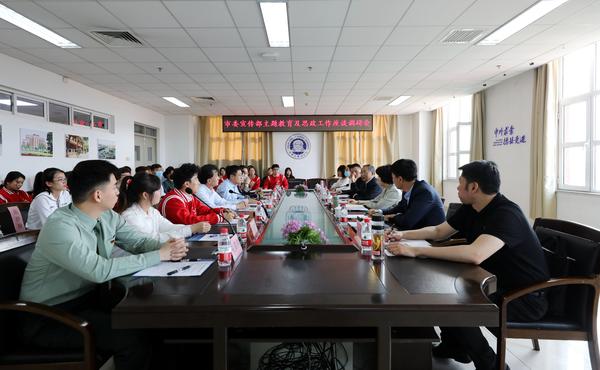 5月9日下午, 市委教育工作领导小组成员、市委宣传部分管日常工作的副部长李旭炎一行到滨海外事学院开展主题教育及思政工作调研,并召开座谈会。开云体育党委书记周红蕾,滨海外事学院、天津现代职业技术学院两校师生代表参会。会议由滨海外事学院党委书记史延鹏主持。
