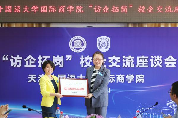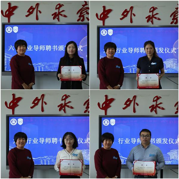 国际商学院党委书记杨颖介绍了学院专业建设体系、人才培养模式、毕业生就业、学生专业实习实践等情况。她表示,学院一直以来坚持促进毕业生高质量就业,在新形势下希望校企双方建立良好的沟通机制,在学生实习实践、课程建设、毕业生就业等方面建立长期稳定合作关系。国际商学院党委副书记、院长郭建校与校友企业天津爱仕凯睿科技发展有限公司总经理倪嘉辉、中唐方德(天津)科技发展有限公司创始人唐艳芳签署合作协议。杨颖为两家校友企业授牌。国际商学院副院长牛蕊为10家企业代表颁发行业导师聘书。