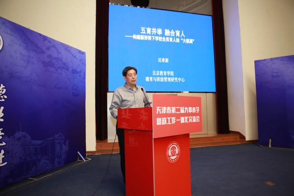 交流会分为上下两个半场,主旨发言环节邀请到首都经济贸易大学原党委书记冯培教授、北京教育学院校长研修学院迟希新教授、天津大学心理健康教育中心主任杨丽、天津市耀华中学党委副书记、校长侯立瑛,开云体育附属滨海外国语学校党委书记、校长王丽分别就“推进大中小思政教育一体化的两个思维”“五育并举 融合育人------构建新形势下学校全员育人大棋局”“大中小学生心理危机预防与干预策略”“汇聚一体化建设合力 共筑思政教育同心圆”“与新时代同频共振 用英语讲好中国故事------中小学英语课程思政建设的思考与实践”等做了深刻讲解论述。