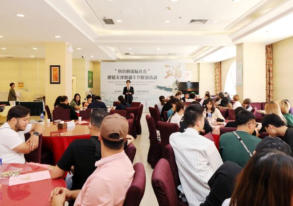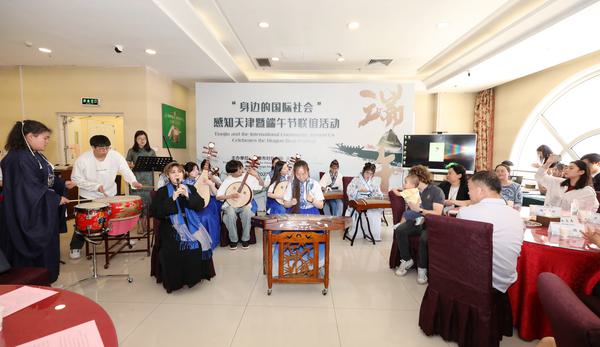 天津经济广播《老外视线》主持人于霁丹为“身边的国际社会”讲授了端午节的由来及相关文化传统,并专门介绍了具有天津特色的端午习俗。现场还邀请有关专家讲授展示了“中国传统制茶技艺及其相关习俗”。中外师生一起赏龙舟、包粽子、论茶道、赏民俗、品美食,并献上精彩纷呈的文艺演出,共同度过了一个欢乐祥和、具有天津味儿的端午佳节。“身边的国际社会”纷纷表示,此次活动令他们印象深刻,以后会更加主动深入地了解天津、感知天津、融入天津,增进文化交流。