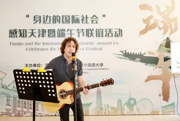 In addition to the boat race, 50 foreign students and teachersfrom Tianjin Foreign Studies University and the Tianjin University ofTechnology and Education were invited to join an event at TFSU organized by theTianjin People's Association for Friendship with Foreign Countries.