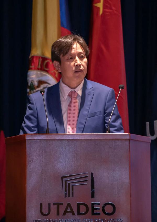 张立平介绍了“天下一家”蕴含的中国文化理念和中国的发展机遇,指出汉语和西语是世界上使用人口最多的语言之一,承载着不同而深厚的文明内涵。世界各国人民各个民族讲着不同的语言,展现了文明的多样性和活力,这是世界的基本特征,也是人类进步的源泉。不同的文明都闪烁着璀璨光芒,跨越时空、超越国界,共同为人类社会现代化进程作出了重要贡献。我们倡导尊重世界文明多样性,坚持文明平等、互鉴、对话、包容,以文明交流超越文明隔阂,文明互鉴超越文明冲突,文明包容超越文明优越。张立平表示,语言是文化的载体、友谊的使者、思想的表达。汉语则是打开中华文化宝库、推开中国机遇之门、开启文明交流之路的金钥匙。希望更多的哥伦比亚年轻人学习汉语,深化对中国的认识,抓住中国的机遇,书写绚丽的青春乐章,共同促进文明对话与交流,用人文理性的光芒照亮人类文明的星空。