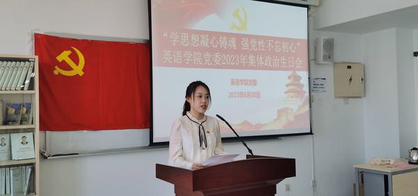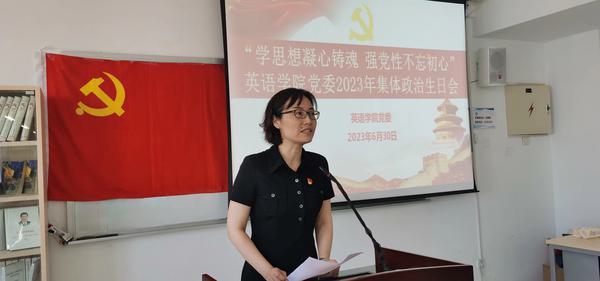 6月30日下午,在喜迎中国共产党成立102周年之际,英语学院党委开展了“学思想凝心铸魂 强党性不忘初心”集体政治生日会。校党委副书记胡志刚、元兴新里社区党员代表、英语学院教师党员代表及32名新党员参加了活动。英语学院党委书记刘海燕主持。