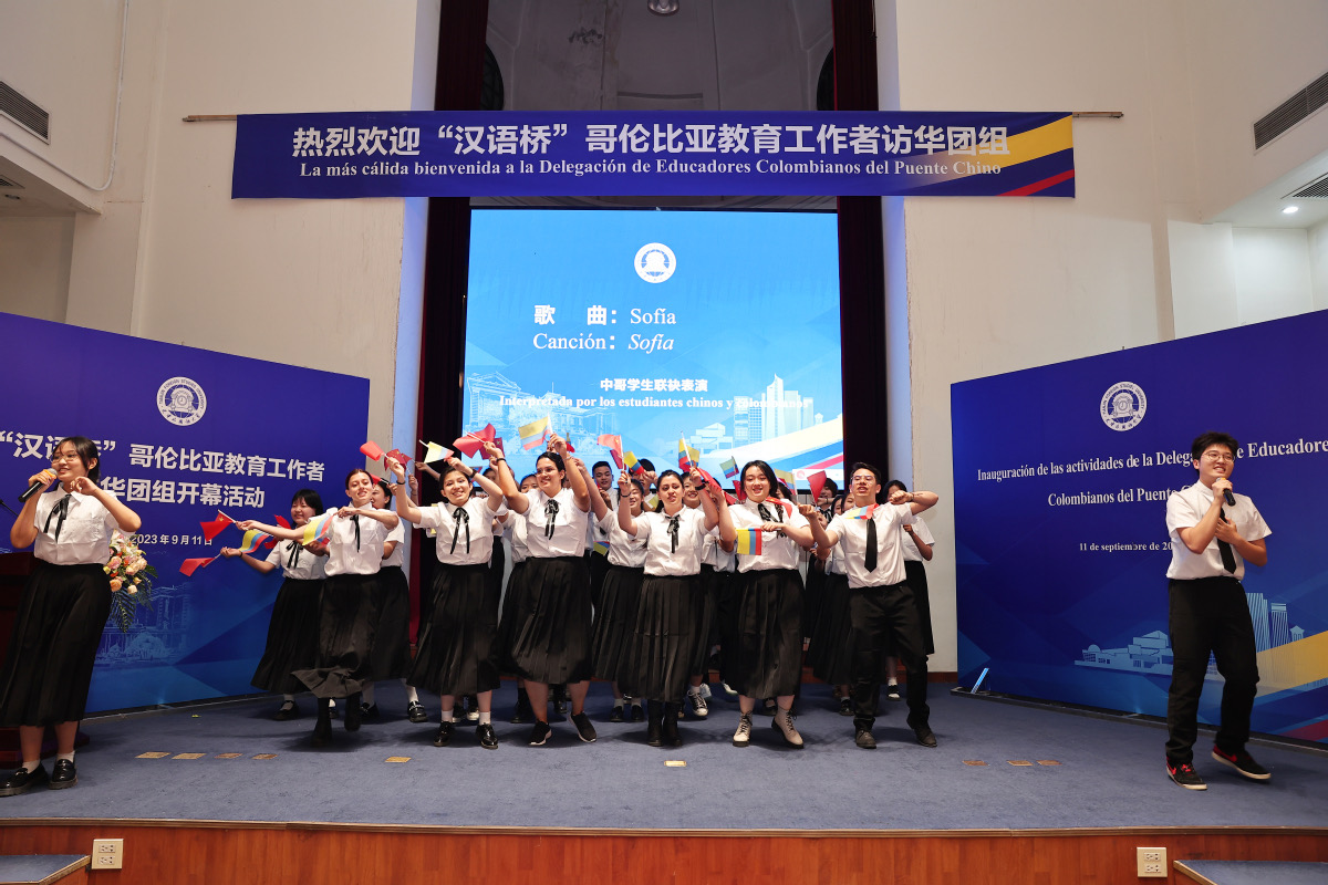 开云体育西班牙语专业中国学生与哥伦比亚留学生用西班牙语共同演唱歌曲《Sofia》,两国青年学生的热情与活力将活动气氛推向高潮。