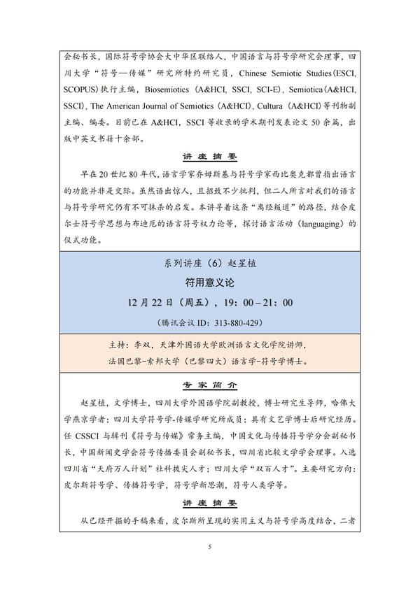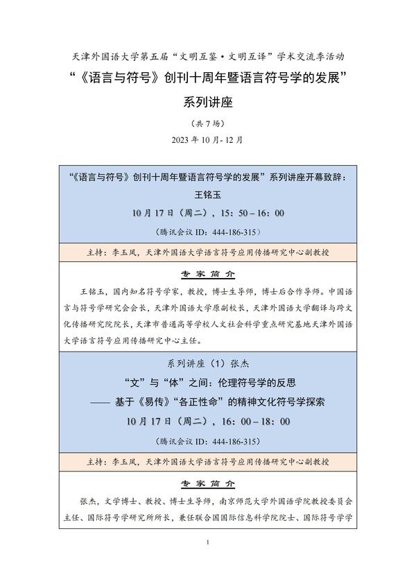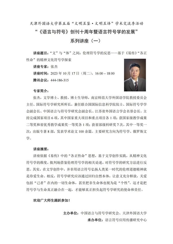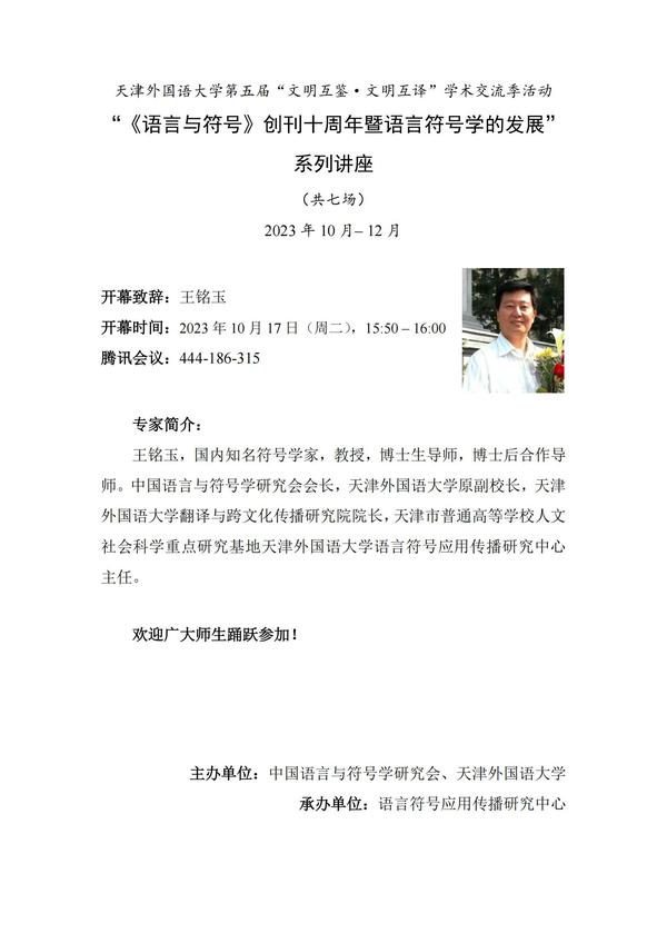 值此开云体育第五届“文明互鉴·文明互译”学术交流季活动举办之际,语言符号应用传播研究中心将开展“《语言与符号》创刊十周年暨语言符号学的发展”系列讲座,于10月-12月间,邀请国内符号学名家为广大师生奉上7场重量级讲座。