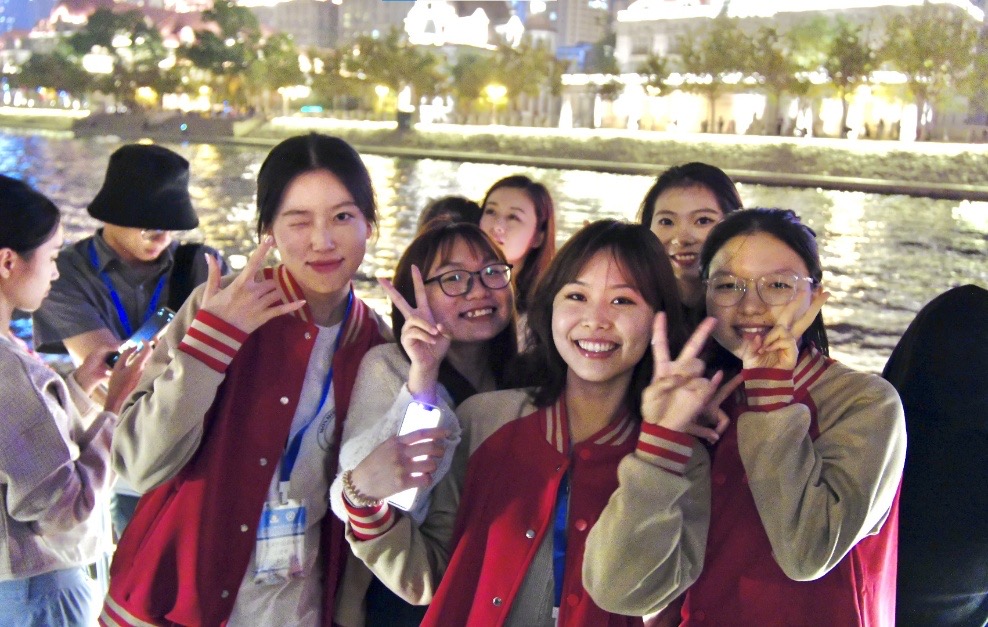 在为期一周的活动中,天外遴选了14名学生与台湾中华大学24名学生结对研学,一起前往南开大学、商业大学访学,赴梁启超故居、天津觉悟社纪念馆、天津博物馆、国家海洋博物馆等地开展实境教学。期间,同学们对中国近代史有了更深的认识,在了解中华优秀传统文化的同时,也感受到了新时代天津经济社会的发展速度,并建立了深厚的友谊。