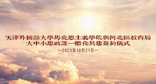 仪式上,马克思主义学院直属党支部书记、院长郑海呐与河北区教育局党委书记、局长段雅睿签署了大中小学思政一体化合作共建协议。双方表示将深刻把握和理解“一体化”建设内涵,打破区域和学段壁垒,下大力气推动“循序渐进、螺旋上升”的大中小学思政育人“共同体”建设,未来将围绕教师培养交流、课程资源共享、学生实习实践、志愿服务活动等多领域开展深度合作。双方将以此次共建为契机,深入贯彻落实大中小学思想政治教育一体化建设重要要求,着力构建“课程建设一体化、育人载体一体化、资源共享一体化”的建设体系,在理论研究、实践教学、集体备课等方面凝聚资源智慧、创新方式方法,打造更多高水平思政“金课”,不断提高思政课的针对性和吸引力。
