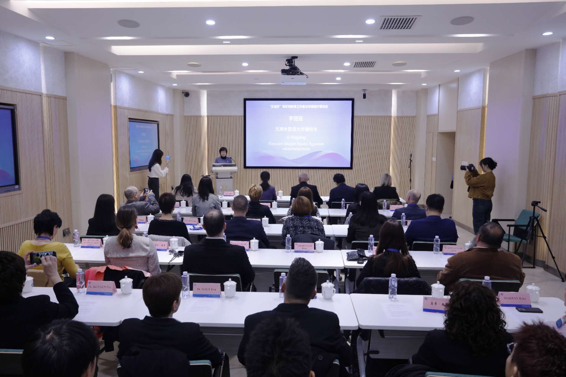 开幕式后,到访的“汉语桥”匈牙利教育工作者访华团组全体成员在逸夫楼莎翁厅座谈交流。匈牙利语专业师生就匈语专业建设、匈语学习、匈语教学等情况与“汉语桥”匈牙利教育工作者访华团组进行了交流研讨。