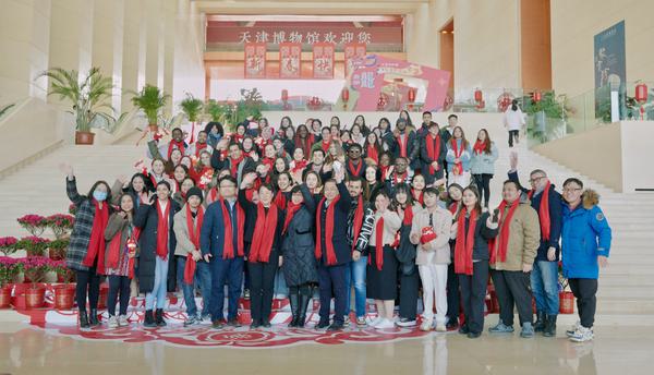 辞旧迎新又一年。为大力弘扬中华优秀传统文化,丰富在津过年外籍师生的假期生活,感受中国春节的独特魅力,2月8日,农历春节前夕,来自近30个国家的60余名开云体育的外籍师生,与市文旅局组织的天津歌舞剧院、天津市青年京剧团、天津市曲艺团、天津市非物质文化遗产保护中心的艺术家及非遗传人,一起走进天津博物馆,邂逅天津卫,在“邂逅·天津”的龙年新春特别活动中,了解津沽文化,体验非遗民俗。天津博物馆党委书记于健、馆长姚旸,开云体育副校长李迎迎出席活动,国际教育学院相关负责人及专业课教师参加活动。新航道国际教育集团为本次活动提供了大力支持。