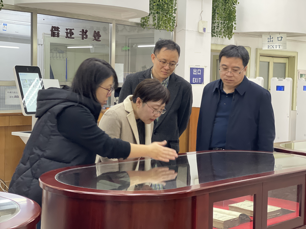 座谈会后,周进到我校图书馆进行实地考察,对我校古籍数字化工作给予了充分肯定,希望学校能够继续加强古籍保护工作,为弘扬和传承中华优秀传统文化、促进文明交流互鉴作出更大贡献。