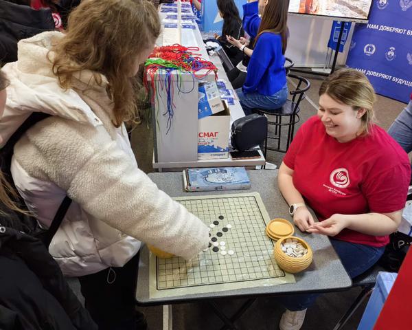 扎娜老师与参展者在下五子棋