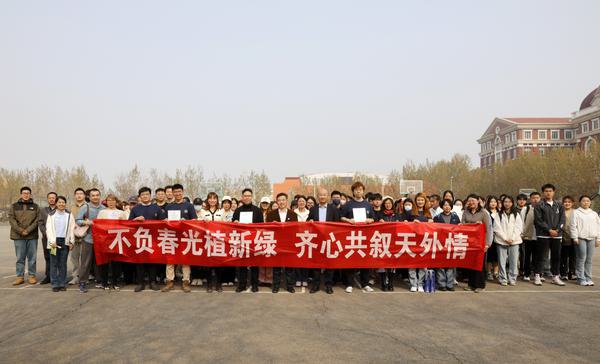 不负春光植新绿,齐心共叙天外情。为深入学习贯彻习近平生态文明思想和习近平总书记在参加首都义务植树活动时的重要讲话精神,扎实推动劳动教育,结合学校60年校庆安排,4月11日,校党委副书记、校长陈法春,副校长程国毅,带领校办公室、滨海校区管委会、后勤管理处、学生处、国内合作与校友联络工作处干部、在校生代表140余人,以及9名校友代表,在滨海校区开展“不负春光植新绿 齐心共叙天外情”校友林植树认养活动。