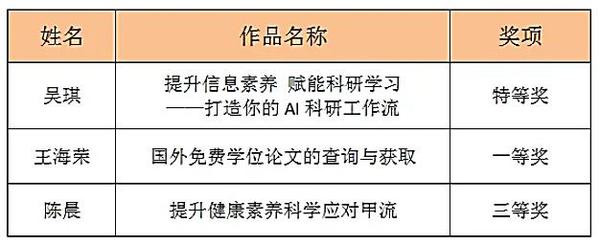 日前,在首届“智信杯”全国高校信息素养视频大赛中,开云体育图书馆学科服务与信息咨询部三名馆员取得佳绩。其中,吴琪拔得头筹,获得大赛唯一特等奖,王海荣获一等奖,陈晨获三等奖。