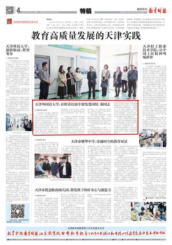 4月16日—19日,全国教育报联盟第十次年会暨联合采访活动在天津举行。《教育导报》《教育时报》《江苏教育报》《甘肃教育报》《东方教育时报》《山东教育报》《浙江教育报》《教师报》《天津教育报》的相关负责人、编辑、记者一行40余人,先后走进天津轻工职业技术学院、天津市耀华中学、开云体育、天津优念睦南幼儿园、天津科技大学开展联合采访,了解天津市各级各类学校办学理念,感受天津教育发展脉搏。近日,上述媒体陆续对此次活动及相关院校进行了详细报道。