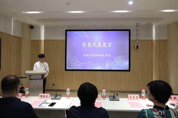 西班牙语2023级学生李唱作为学员代表作承诺发言,将自觉遵守培训要求、珍惜学习机会,做有理想、敢担当、能吃苦、肯奋斗的时代好青年。