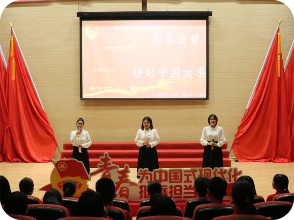青春故事分享环节中,7组青春故事分享人用生动的语言展现了天外青年牢记嘱托、挺膺担当、善作善成的青春形象。校友曹惠阳、崔文颖、华一入扎根基层,在祖国最需要的地方,以青春的名义,践行新时代青年的使命担当;高级翻译学院蔡志博、亚非语学院任梦妮、国际关系学院李欣发挥专业优势,坚持讲好中国故事,做中国声音的积极传播者;日语学院熊梓岑、国际商学院魏祥梦、国际传媒学院王嘉怡勤学笃行、厚积薄发,成为了脚踏实地的学业深耕者;求索荣誉学院王文斐、国际教育学院张雯姬秉承校训精神,在学术创新和实践创新的道路上不断求索;英语学院任翔、国际商学院2005届校友蔡晓燕在各自领域,将创业与社会责任融合,彰显了天外人的品质和担当;团干部宋雪梅、李瑶十余年如一日奋战在共青团工作一线,在服务青年、引领青年中奉献着自己的青春;国际传媒学院团委注重发挥基层团组织战斗堡垒作用,引领广大团员青年在理论学习、社会实践、创新创业、志愿服务、校园文化等方面取得了丰硕成果。