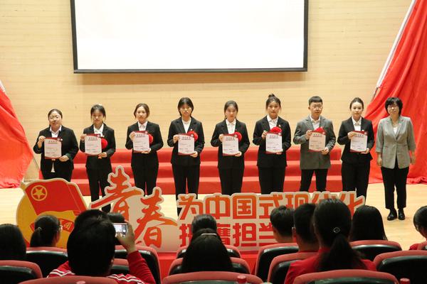 校党委常委、副校长李迎迎为新团员颁发团员证、团章 重温入团誓词