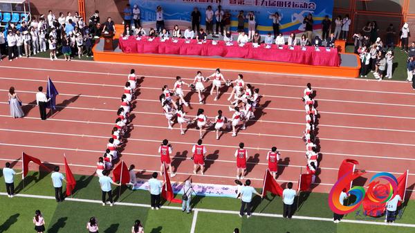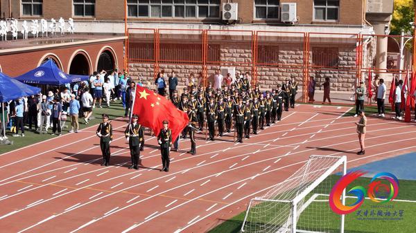 焕然一新的运动场上,身着礼宾服的国旗护卫队英姿飒爽、昂首阔步,红旗方阵旗帜滚滚似五月花海,花束方阵踏着音乐的节拍奏响青春华章。各学院方阵迈着整齐的步伐、喊着响亮的口号,意气风发、气宇轩昂地经过主席台,他们用精心设计、独具特色的入场式表演展示各学院的特点,彰显着天外学子朝气蓬勃、积极向上的精神风貌。