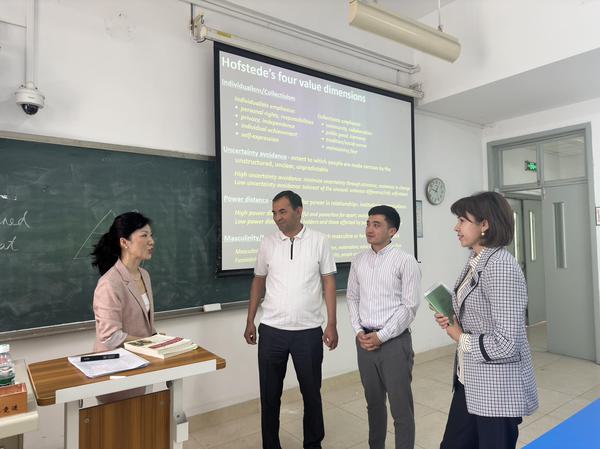 访问期间,国立古利斯坦大学代表团成员现场观摩了英语学院相关课程,并与通识教育学院数学教研组教师进行了座谈交流。