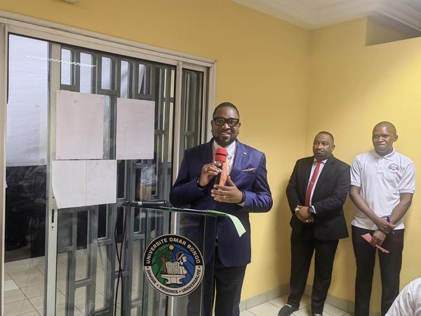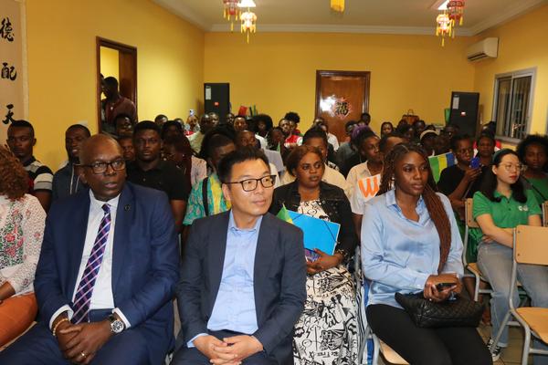 近日,加中友好协会联合邦戈大学孔子学院成功举办友好交流活动。中国驻加蓬大使馆临时代办朱小乐先生,加中友好协会会长、利伯维尔第四区市长阿克塞尔·杰森·阿耶努先生,邦戈大学校长顾问戈麦斯·阿莱莱·埃阿特女士、图书馆馆长费迪南德·恩古古鲁先生,加中友好协会全体会员、邦戈大学孔子学院师生共计100余人参加活动。