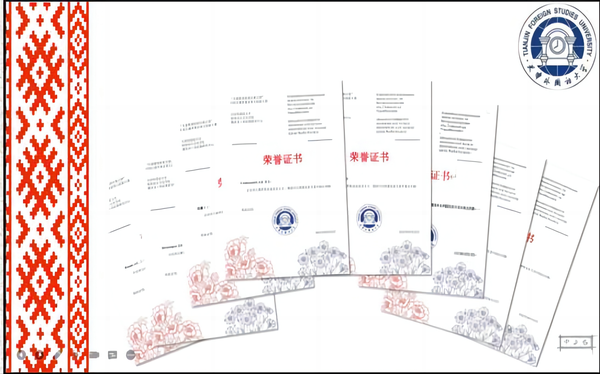 “从蓝眼国度到天朝古国------全国白俄罗斯语智力创新大赛”获奖证书