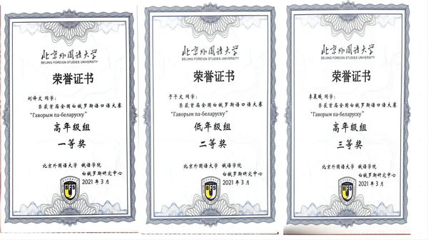 “全国首届白俄罗斯语口语大赛”获奖证书
