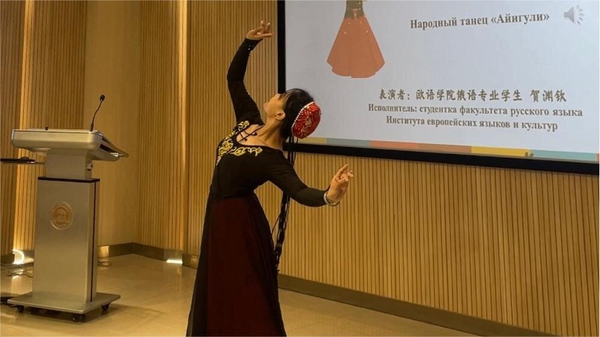 在开营仪式上,我校俄语专业学生为来宾带来了一场视听欢宴。民族舞蹈《阿依古丽》、中俄双语歌曲《茉莉花》《红莓花儿开》不仅向外方展现了天外俄语专业人才培养的有效成果,还生动地传达了中国优秀传统文化和民族文化的独特魅力,让在场的每一个人都感受到了中俄文化交流的深厚情感。