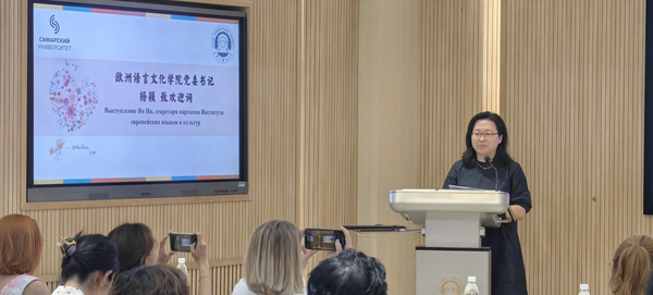 杨颖代表学院向来自俄罗斯的朋友们表示热烈欢迎,介绍了欧洲语言文化学院的专业情况和学科优势,并介绍了学院此前承办的多项对外汉语语言与文化项目,表达了对双方未来交流合作的美好愿景。
