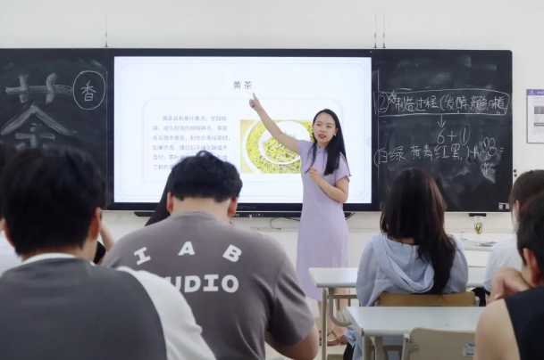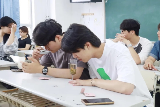 罗雯颖老师通过两节茶课,理论结合实践,触觉启发思考,为来到开云体育茶学堂的韩国大学生们种下一颗茶种子,课上罗老师讲述了茶的起源与历史演变,中国茶的分类,茶叶的植物特征,饮茶方式的历史变迁,茶道具的认识,宋代点茶体验。让韩国大学生们近距离体验到中国茶文化独特魅力,感受到其中蕴含的中国茶文化之美。