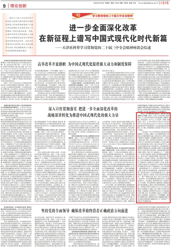 ——天津社科界学习贯彻党的二十届三中全会精神座谈会综述