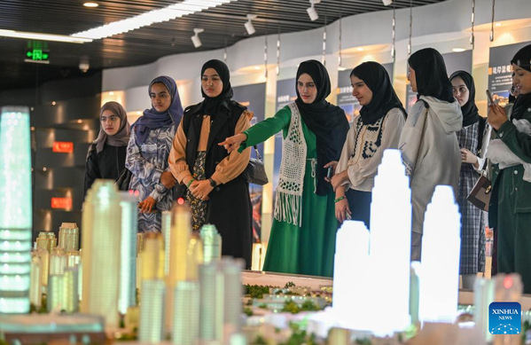 Omani youngsters visit Tianjin Planning Exhibition Hall in north China's Tianjin Municipality, Aug. 13, 2024. Twenty-two youngsters from Oman are on a two-week study tour in Beijing and Tianjin to experience the Chinese culture. (Xinhua/Sun Fanyue)